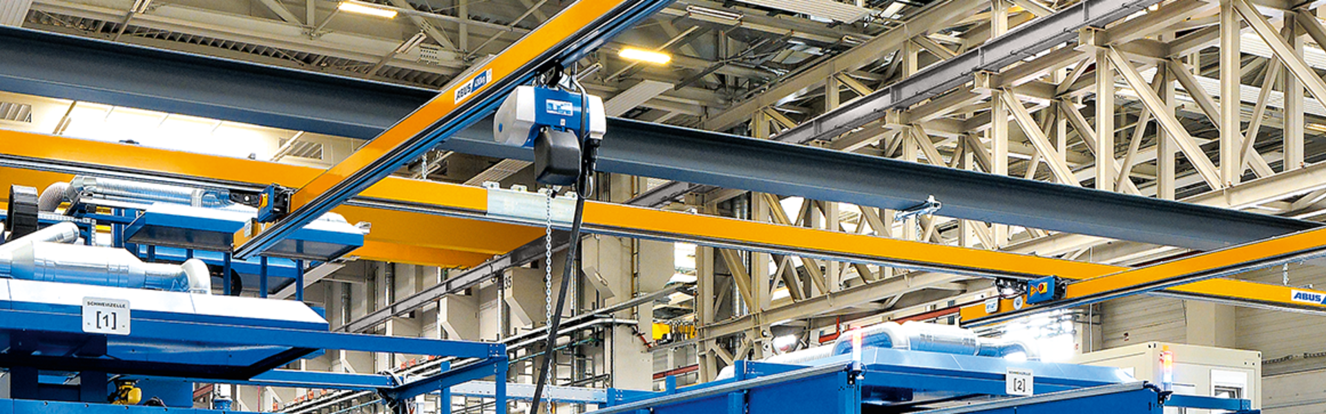 Der ABUS Einträgerkran EHB ist die „leichteste Lösung“ für den flächendeckenden Materialtransport in Hallen. Durch den einfachen Aufbau mit zwei Schienen und einem Kranträger ist der EHB sehr leicht und kann daher problemlos von Hand verfahren werden. Zudem ist auch die Installation in Leichtbauhallen mit geringer Tragfähigkeit machbar.