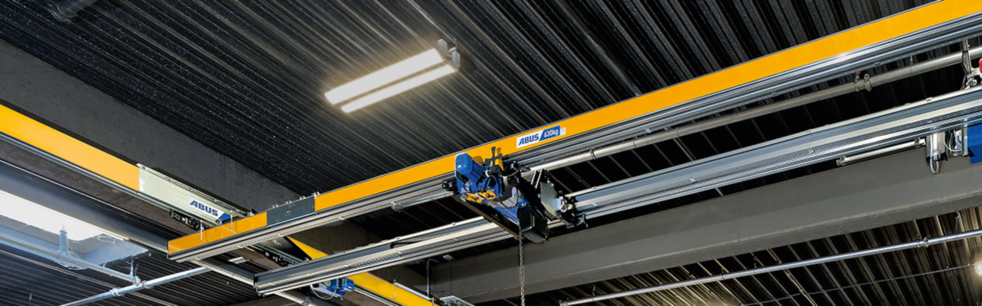 Der ABUS Zweiträgerkran ZHB ist unsere Antwort für große Lasten im flächendeckenden Transport. Zudem zeichnet sich der ZHB durch große Kranträgerlängen aus. Der ABUS Kettenzug ist auch hier zwischen den Kranträgern angeordnet, was ein Plus an Hakenhöhe bedeutet.