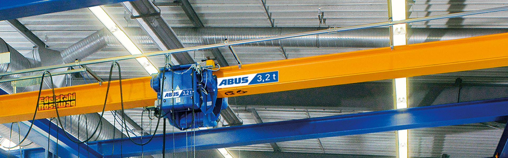 ABUS Deckenlaufkrane bieten Tragfähigkeiten bis 8 t und Spannweiten bis 25 m. Sie sind in den Ausführungen DLVM und EDL mit Walzprofilträger sowie EDK mit torsionssteifem Kastenträger erhältlich. Auch für die ABUS Deckenlaufkrane steht ein umfangreiches Programm an Zusatzausstattungen zur Verfügung.