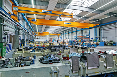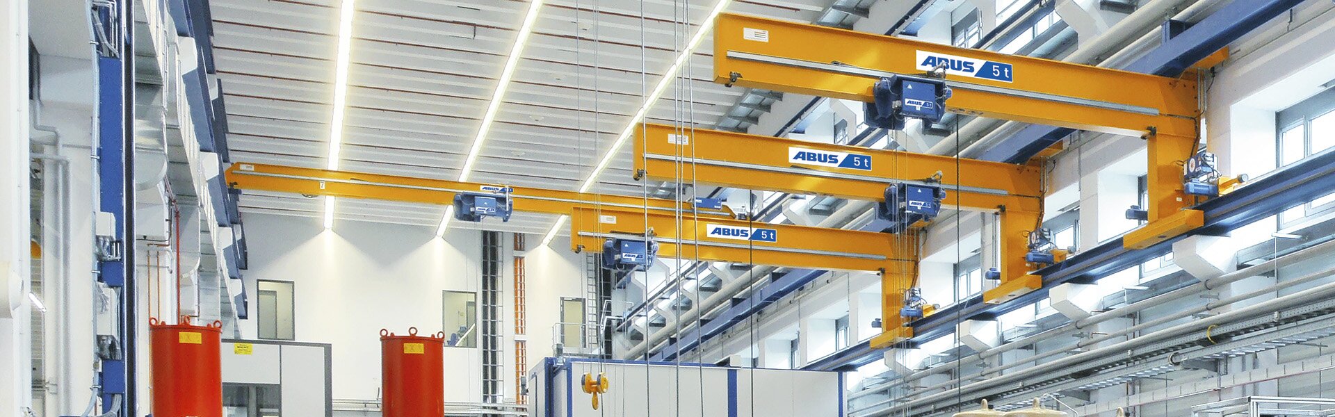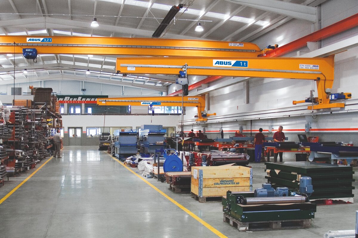 Der ABUS Wandlaufkran (Konsollaufkran) bewegt sich auf einer eigenen Ebene unterhalb großer Laufkrane. Damit haben Sie die Möglichkeit, unabhängig vom übergeordneten Laufkran auch innerhalb einzelner Produktionsbereiche individuell zu transportieren.