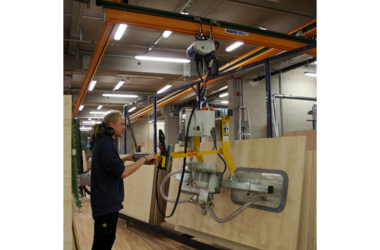Beim Aufbau und Handling der teilweise riesigen Bühnenteile spielen die ABUS Krane eine tragende Rolle: so wird mit den in einer Reihe hängenden, stationär angebrachten Kettenzügen der Baureihe ABUCompact mit einer Tragfähigkeit von 500 kg die Bühnensituation nachgebildet und die Kulisse exakt so gehoben und abgesenkt, wie es auch später bei einer Aufführung der Fall sein wird. Für weitere Montagearbeiten stehen zwei Hängebahnsysteme mit einer Kranbahnlänge von 24 m, einer Spannweite von 10 m und einer Tragfähigkeit von 500 kg zur Verfügung. In der Montagehalle wird ein Kran des Typs ZHB-X eingesetzt, der durch seinen aufgebockten Kran eine optimale Ausnutzung der Raumhöhe sicherstellt; in der Tischlerei kommen zwei Krane des Typs EHB zum Einsatz, die zudem als Bedienelement über einen Vakuumheber verfügen. Die Kranbahn ist über 60 m lang, so dass mit dieser EHB-Anlage mehrere Maschinenarbeitsplätze bedient werden können.