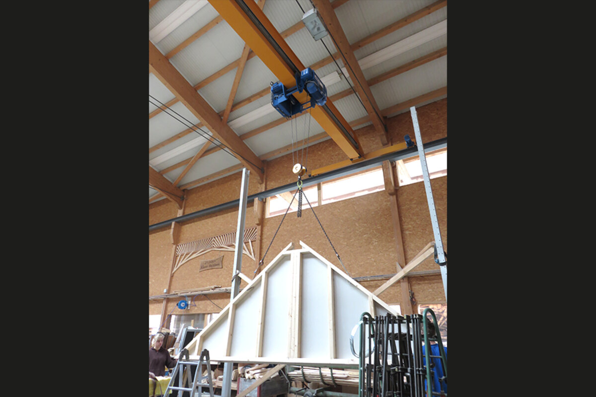 Vom Gartenhaus bis zur Industriehalle – ABUS Einträgerlaufkran in einem holzverarbeitenden Betrieb in der Schweiz