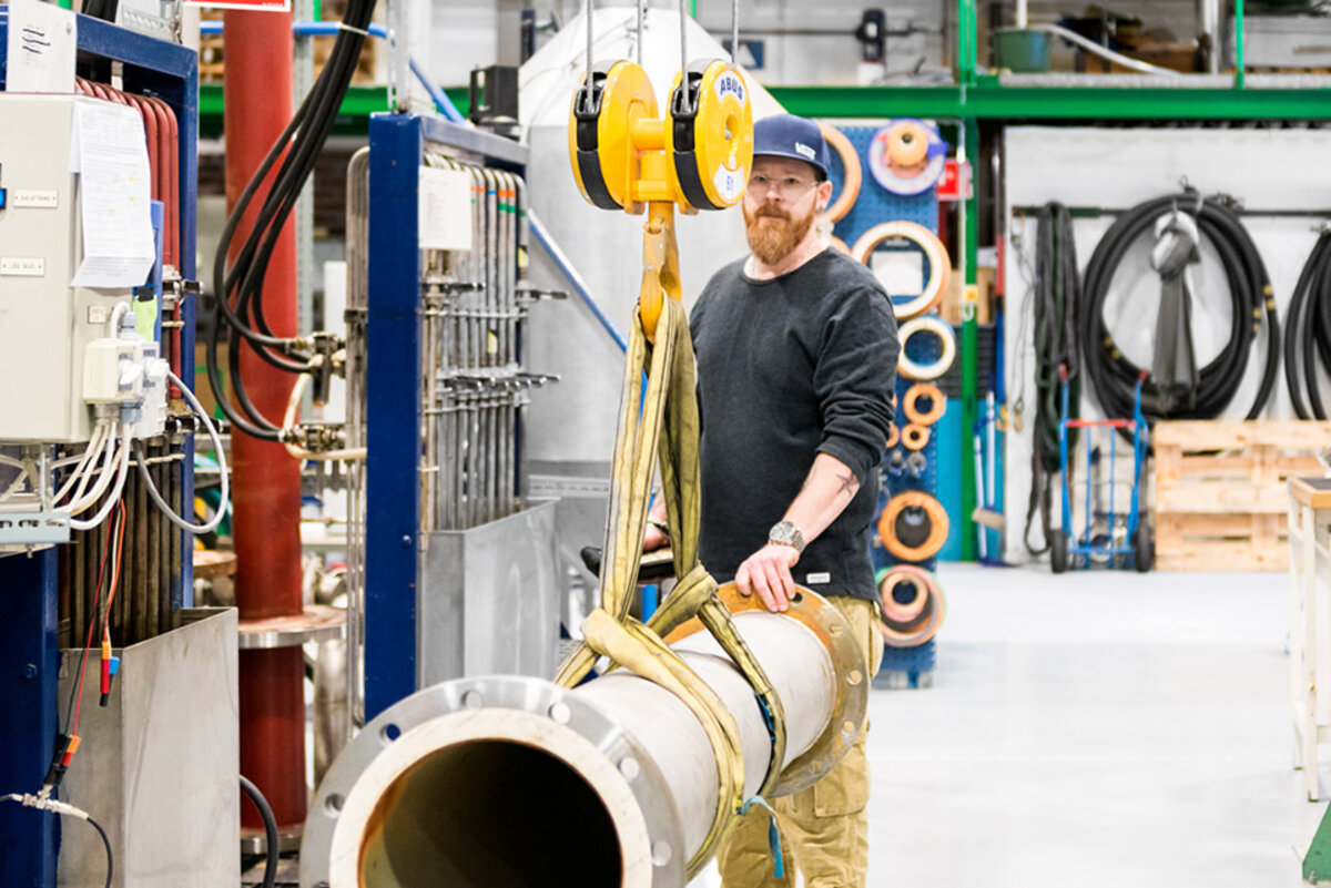 Die Kranbediener im RISE, die Durchflussmesser für die Ölindustrie testen und in den Testphasen längere Rohre mittels einer Traverse anschlagen müssen, schätzen am neuen Kran besonders die Lastpendeldämpfung, die gleichermaßen bei Fahrkomfort und Sicherheit punktet. Sie ermöglicht weniger erfahrenen Kranbedienern den sicheren Transport von Gütern auch in sensibleren Bereichen. Die Lastpendeldämpfung beruht auf einer mathematischen Berechnung, in die Fahrgeschwindigkeit, Beschleunigung und Verzögerung von Kran und Katze, die Hakenposition und die Länge des Lastaufnahmemittels einfließen. Neben der Lastpendeldämpfung bietet ABUControl eine Reihe weiterer Funktionen für einen optimalen Kranbetrieb: für einen hohen Fahrkomfort können ABUS Krane über Fahr- und Hubprofile an die aktuelle bzw. gewünschte Situation im Kranfahrbetrieb angepasst werden: so weisen z.B. Krane mit zwei festen Geschwindigkeiten andere Fahreigenschaften als frequenzumrichtergesteuerte Krane auf. Der im RISE eingesetzte Kran verfügt über ein Hebezeug. Kommen jedoch zwei Hebezeuge an einem Kran zum Einsatz oder sogar zwei Krane im Tandem mit jeweils zwei Hebezeugen, so sorgt die Gleichlaufregelung in der ABUControl Steuerung dafür, dass die Hubgeschwindigkeiten nicht auseinanderlaufen. Hierfür muss der Kran mit Frequenzumrichtern ausgerüstet sein. Ein Plus an Sicherheit und Komfort besonders beim Transport von langen Gütern.
